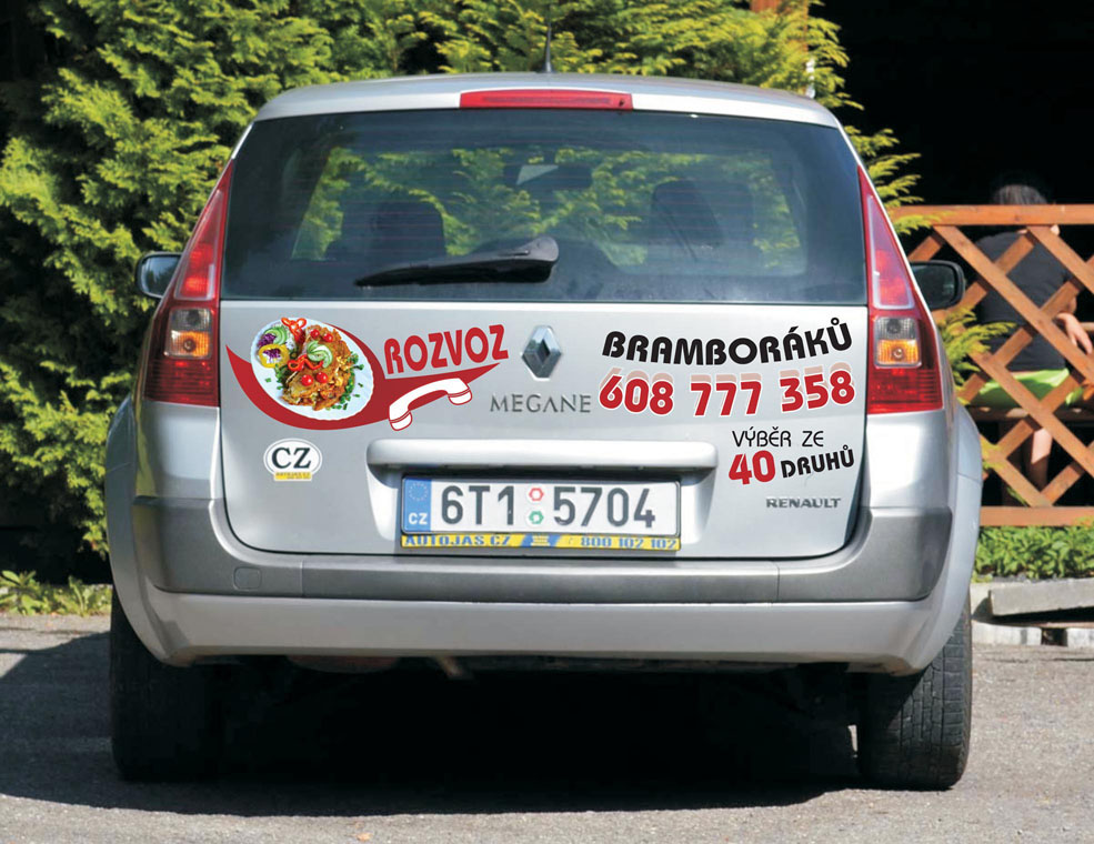 - náročnější, avšak mnohem nápadnější a poutavější polep vozidla pro rozvoz bramboráků
